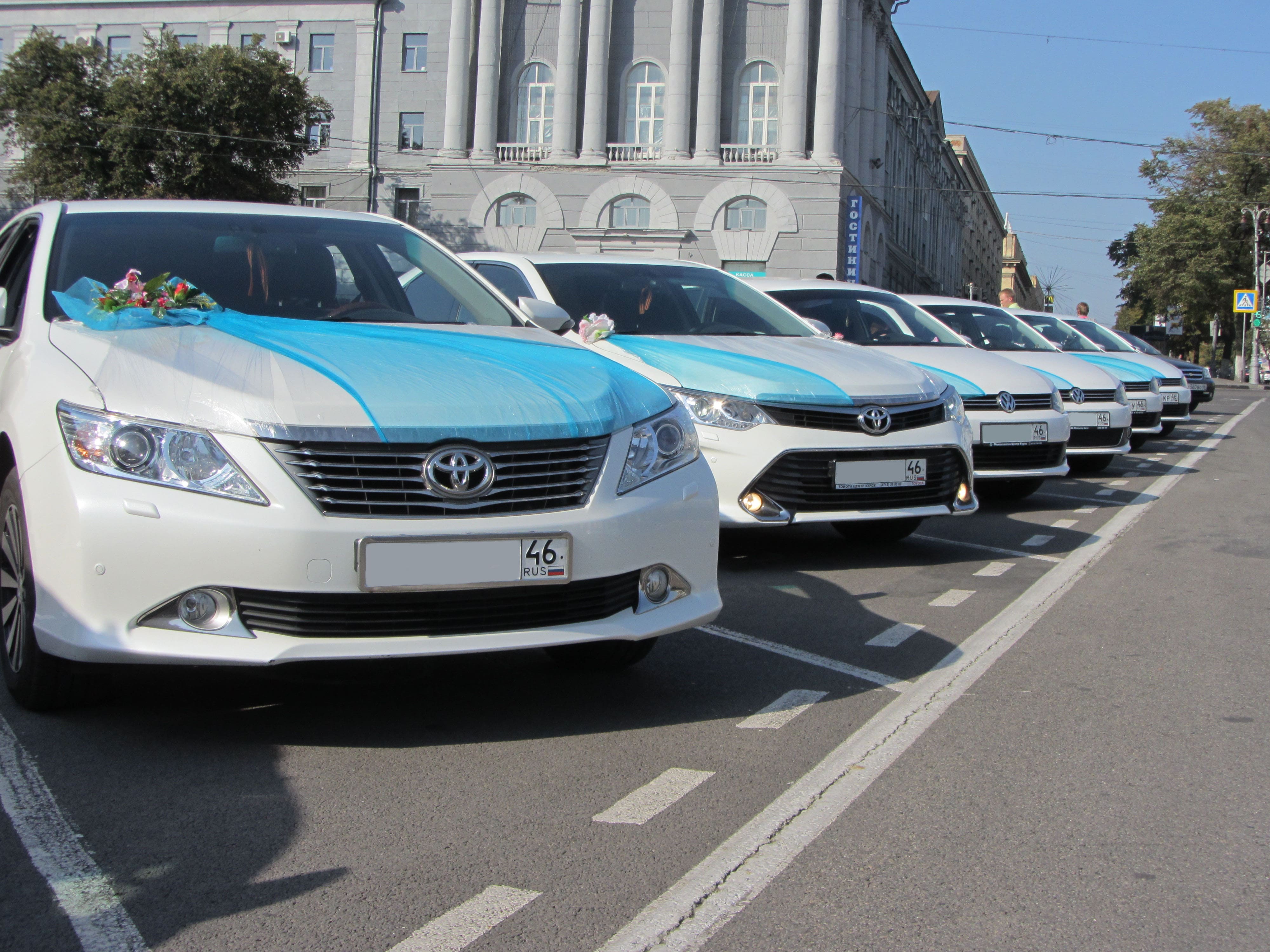 Выбирая машины на свадьбу Toyota Camry в свадебно-транспортной компании «Курские кортежи/Машины на свадьбу», Вы получаете эталон безопасности, надежности и комфорта, среди седанов бизнес-класса за очень оптимальную цену!