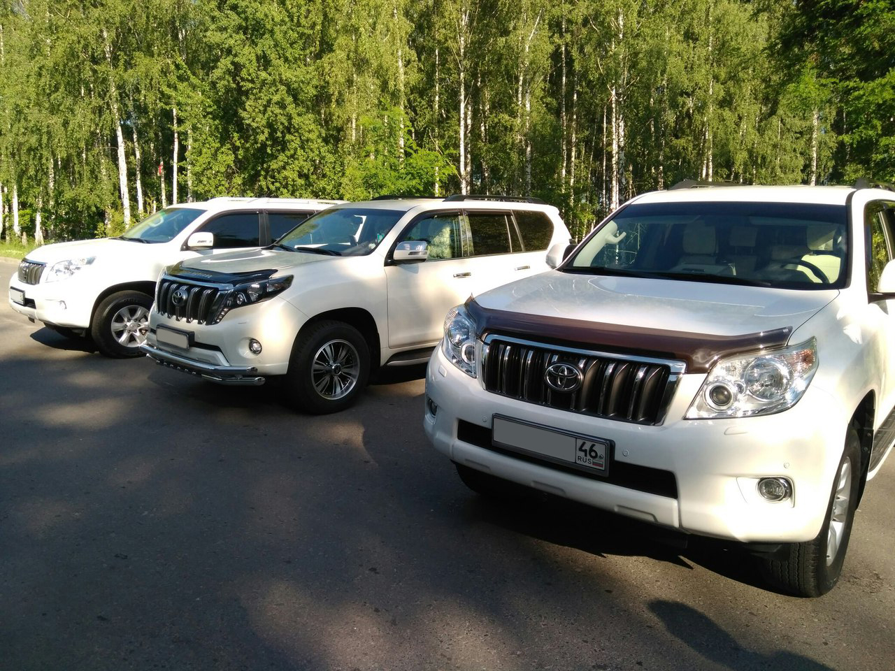 Его динамические характеристики более хороши, чем о них говорят. Машина буквально рвется на Вашу свадьбу. Ход автомобиля плавный, мягкий и не укачивающий. Система курсовой стабилизации позволяет легко и без заносов проходить виражи и бездорожье. Выезд за город на таком мощном транспорте обыйденное желание любящих пар и веселой, шумной компании. Усадьба Ольшаное, база отдыха "Сейм" в п. Жуково, Коренная Пустынь, Курчатов набережная, Марьино - далеко не все места где побывал свадебный кортеж из таких автомобилей. Свадьба в Курске проходит безупречно и ошеломительно весело в сопровождениии эскорта из Toyota Land Cruiser Prado!!!