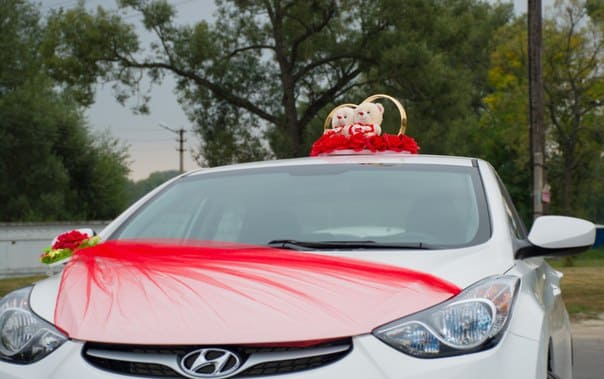 Наиболее популярными вариантами украшений являются ленты, фатины, цветы на капот, бутоньерки на ручки и зеркала, а также нанесение рисунков, и прочей свадебной атрибутики. Конечно, украшение воздушными шарами уже отходит в прошлое, да и к тому же в процессе поездки они просто улетают или взрываются. Несомненно, свадебной традицией являются кольца на крыше автомобиля, как атрибут совместной счастливой семейной жизни, и шикарные фатины либо ленты. Наиболее дорогостоящим удовольствием будет украшение капотов живыми композициями – здесь никто не ограничен в фантазии!!